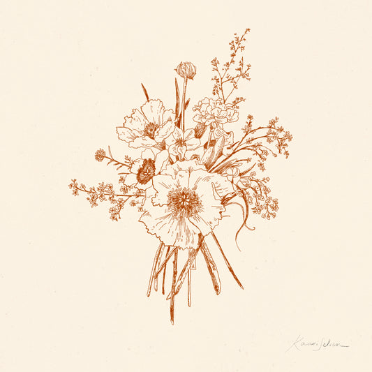 Floral Oval Pen and Ink Drawing Blank Greeting Card