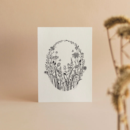 Floral Oval Pen and Ink Drawing Blank Greeting Card