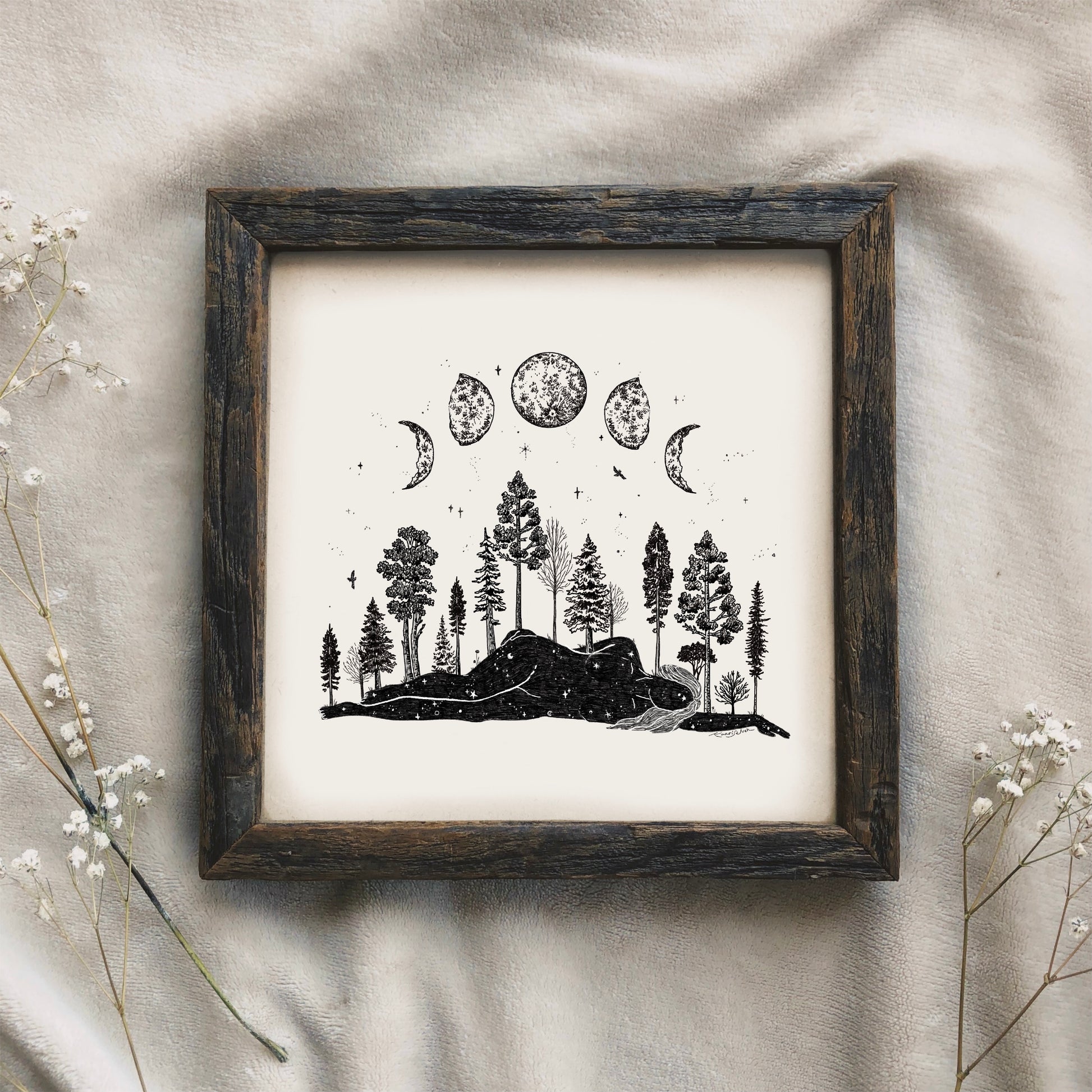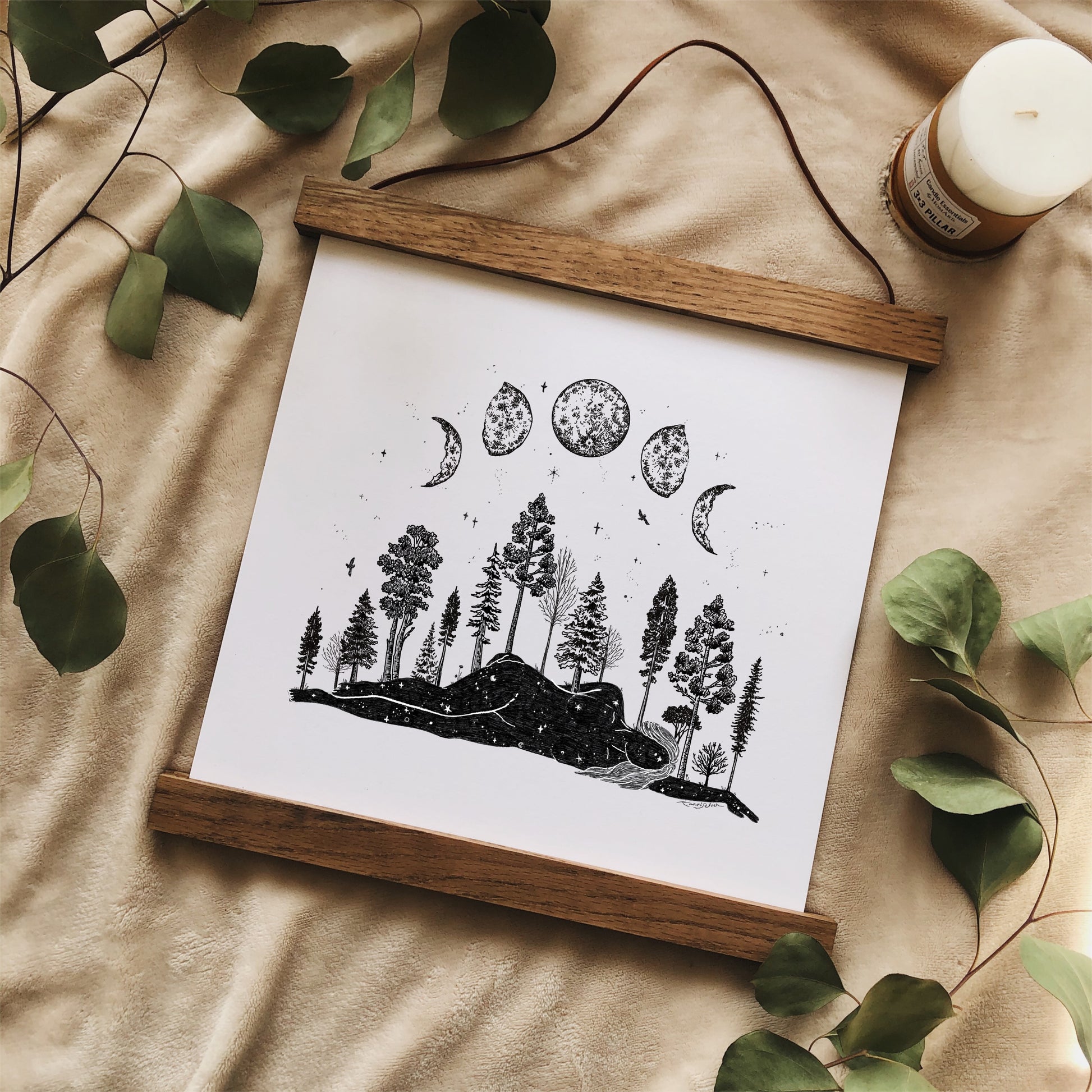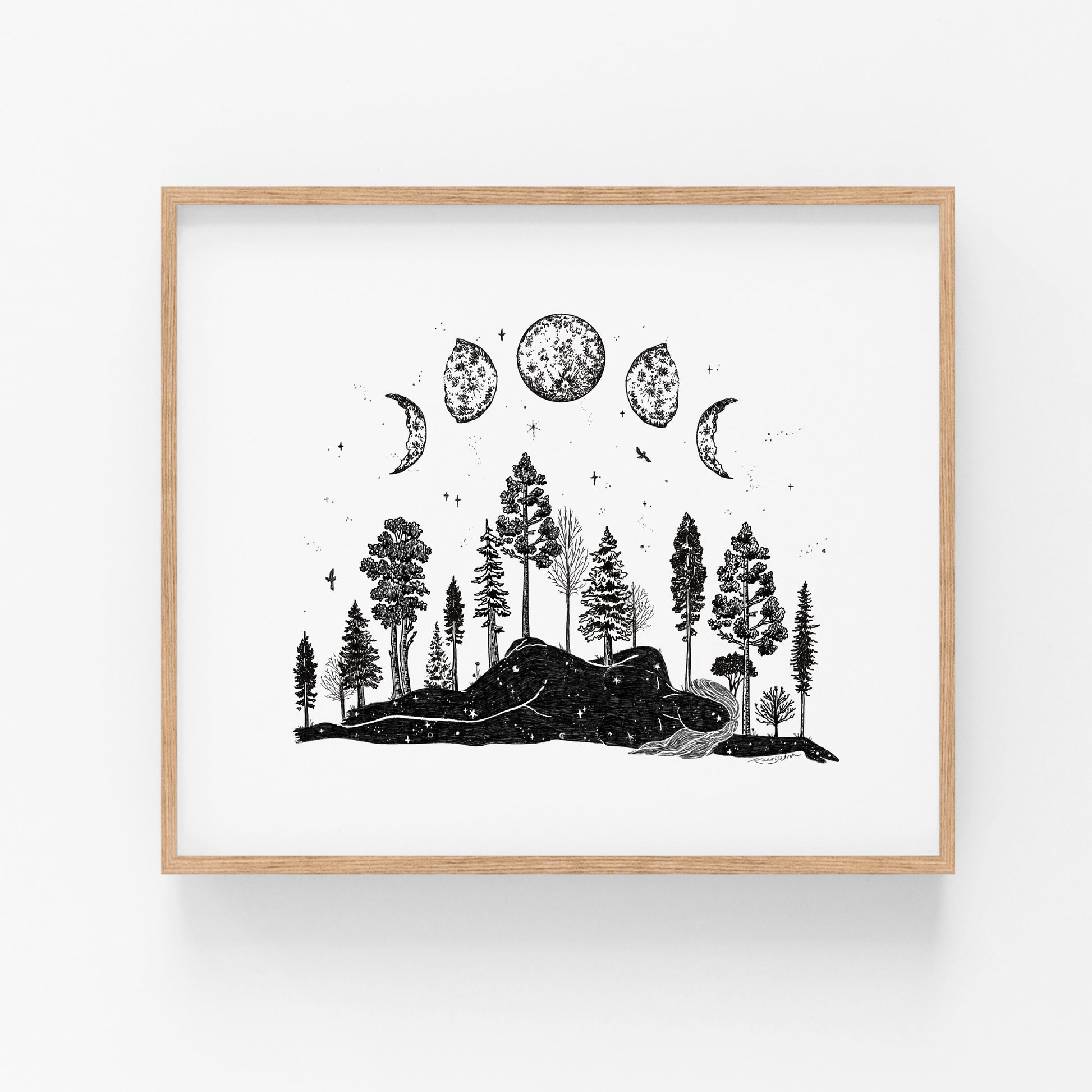 Forested Moon Phase Woman Art Print