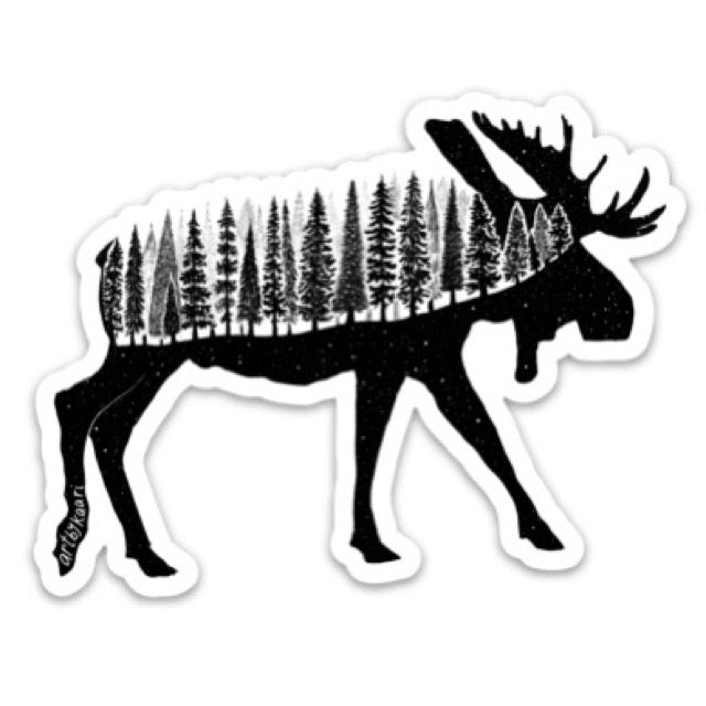 Forested Moose Vinyl Sticker