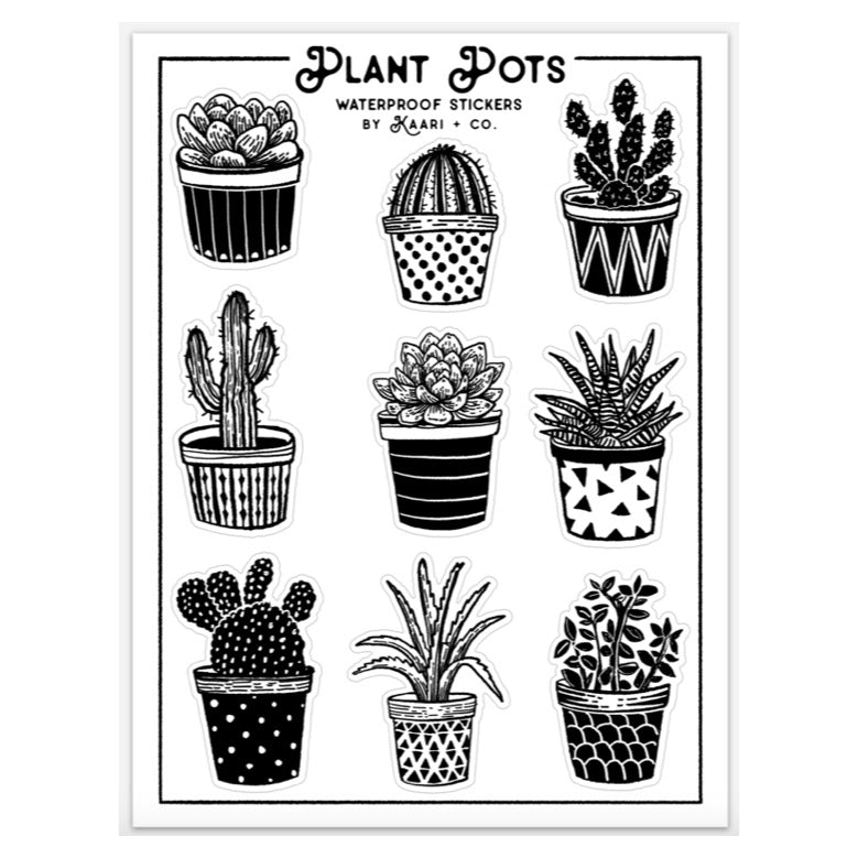 Set of 9 waterproof stickers on a 6" x 8" sheet. Each individual sticker is die-cut with a white outline and measures approximately 1.5" x 1.5"