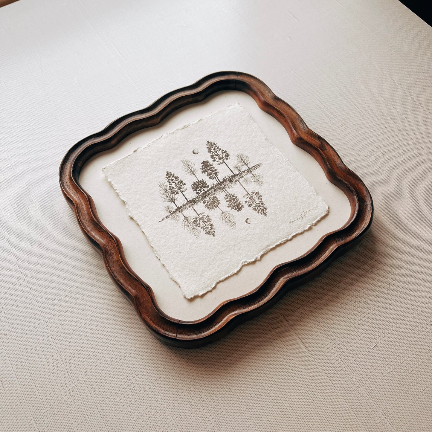 Bring a touch of whimsy into your space with the Tree Reflections Heirloom Art Print. This detailed, hand drawn artwork by Kaari Selven features a delicate, hand-drawn tree scene. Each print is printed with care in the artist’s home studio in Portland, Oregon. Snag yours ready-to-hang in a dreamy, scalloped wood frame.