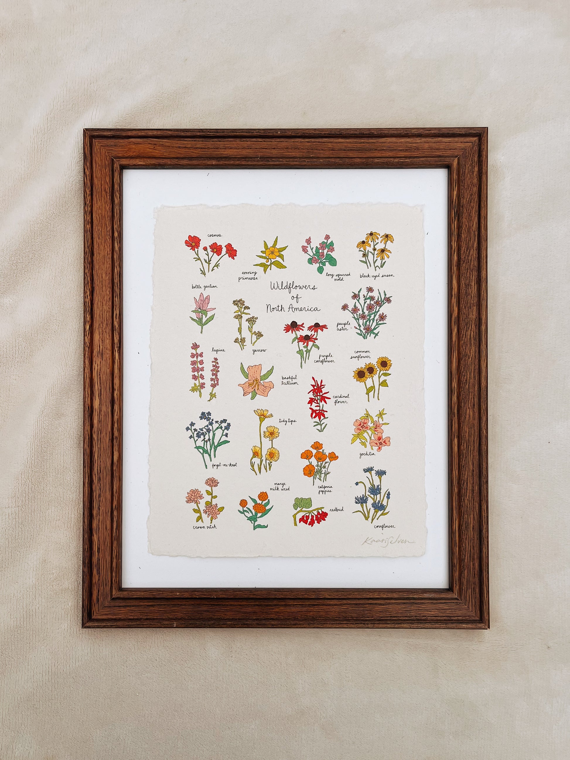 Bring a touch of whimsy into your space with the Wildflowers of North America Heirloom Art Print. This detailed, hand drawn artwork by Kaari Selven features a colorful assortment of delicate botanical drawings native to North America. Each print is printed with care in the artist’s home studio in Portland, Oregon. Snag yours ready-to-hang in a woodgrain frame or one of the unframed prints in this limited edition run.